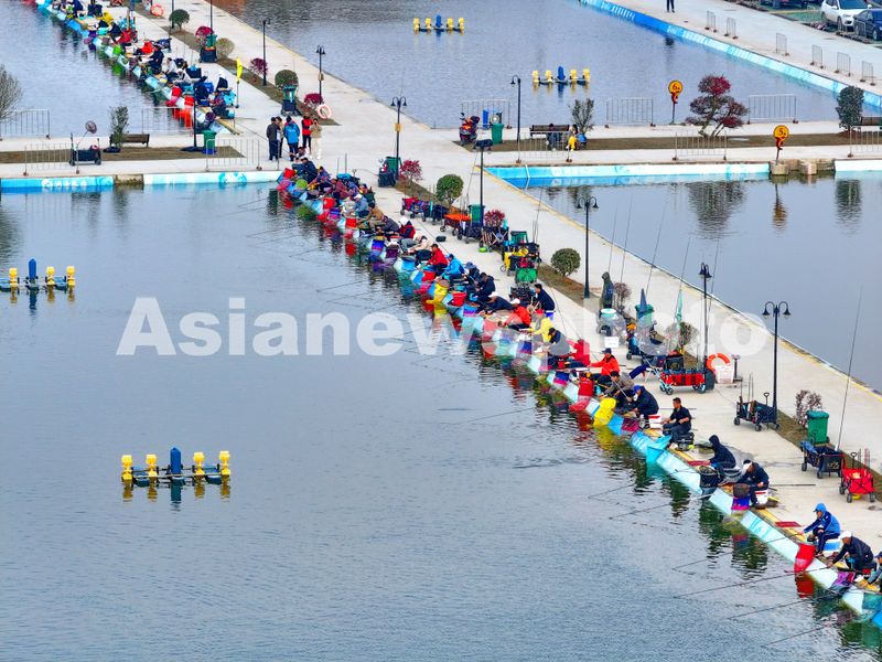 图片说明:2025年3月16日,江西省抚州市金溪县琅琚镇枫山村的一处乡村垂钓基地,许多中老年垂钓爱好者在进行路亚钓、飞绳钓等专业化钓鱼竞技比赛。