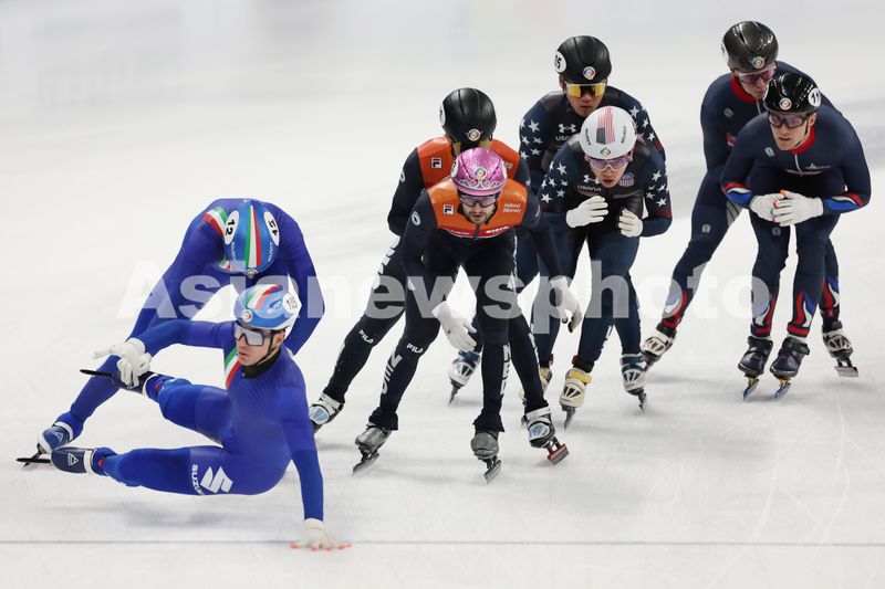图片说明:意大利选手在男子5000米接力中失误。