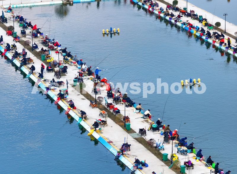 图片说明:2025年3月16日,江西省抚州市金溪县琅琚镇枫山村的一处乡村垂钓基地,许多中老年垂钓爱好者在进行路亚钓、飞绳钓等专业化钓鱼竞技比赛。
