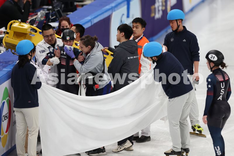 图片说明:美国选手Kristen Santos-Griswold在比赛中受伤。