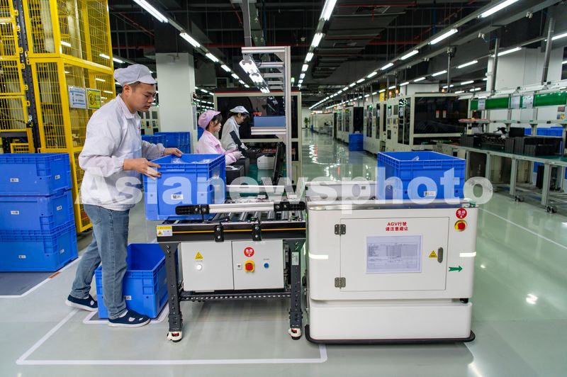 2025年3月13日,浙江省兰溪经济开发区浙江欣旺达电子有限公司电池自动化生产线上,工人在忙生产赶订单。