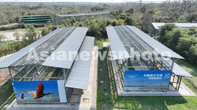 图片说明:2025年3月18日,俯瞰浙江省朱鹮抢救保护基地。