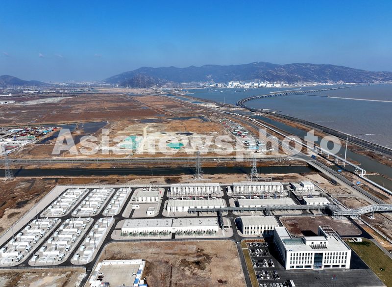 图片说明:2025年3月18日,中核田湾200万千瓦滩涂光伏220千伏升压站一角。
