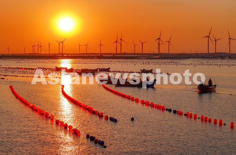 2025年3月19日,山东省荣成市桑沟湾海洋牧场,转动工作的风力发电机与朝霞、大海、渔船交相辉映,景美如画。近年来,荣成市积极融入绿色低碳高质量发展先行区建设,依托沿海丰富的风能、光能资源,科学规划布局海上风电建设,建成的大批新型风力发电、光伏发电等绿色能源,推进碳达峰、碳中和,有力促进了当地渔业经济发展,助力乡村振兴。