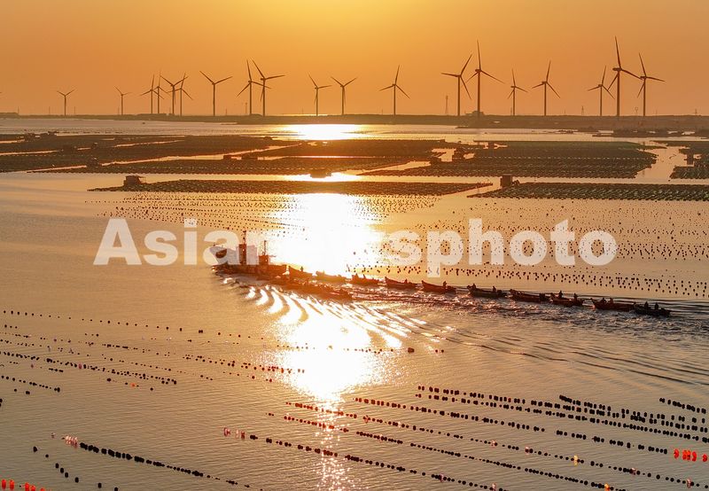 2025年3月19日,山东省荣成市桑沟湾海洋牧场,转动工作的风力发电机与朝霞、大海、渔船交相辉映,景美如画。近年来,荣成市积极融入绿色低碳高质量发展先行区建设,依托沿海丰富的风能、光能资源,科学规划布局海上风电建设,建成的大批新型风力发电、光伏发电等绿色能源,推进碳达峰、碳中和,有力促进了当地渔业经济发展,助力乡村振兴。