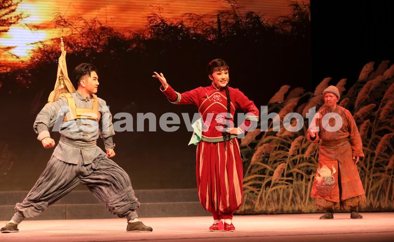 图片说明:2025年3月19日,江苏省淮海剧团青年演员表演淮海戏《天下民心·采莲支前》。