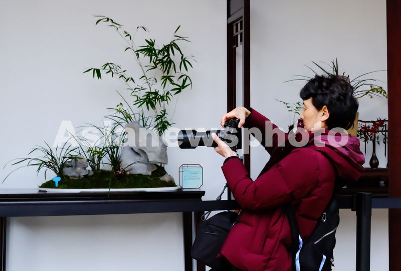 图片说明:2025年3月19日,游人在江苏省苏州市古典园林沧浪亭举办的2025年中国历史名园(苏州)兰花艺术邀请展拍摄兰花作品。