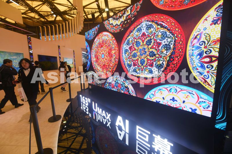 图片说明:2025年3月20日,观众在2025中国家电及消费电子博览会(2025AWE)上观看TCL163吋AI巨幕显示屏。