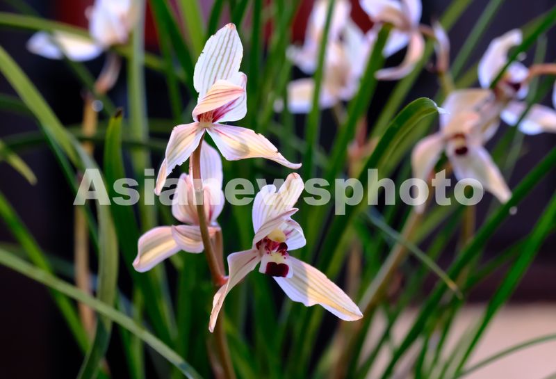 图片说明:2025年3月19日,在江苏省苏州市古典园林沧浪亭拍摄的2025年中国历史名园(苏州)兰花艺术邀请展参展的兰花作品。