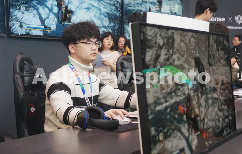图片说明:2025年3月20日,观众在2025中国家电及消费电子博览会(2025AWE)的TCL展台进行《黑神话,悟空》游戏。