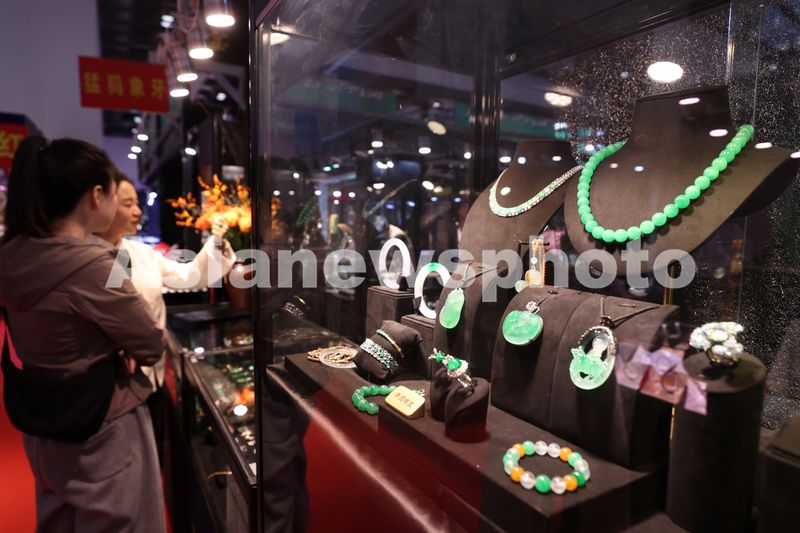 图片说明:2025年3月19日,观众在 2025北京国际珠宝展上观看珠宝首饰。