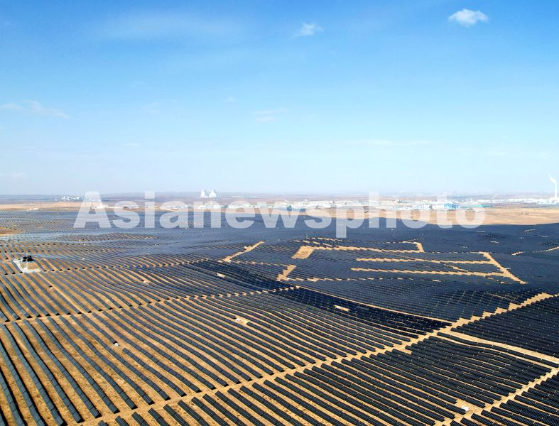 图片说明:2025年3月14日,位于宁夏灵武市宁东镇的宁东200万千瓦复合光伏基地,一块块光伏太阳能发电板与蓝天、白云相映成景,源源不断地输送着绿色能源。