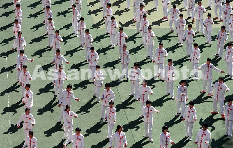 图片说明:3月20日,河北省邯郸市邯山区实验中学的学生在练习太极拳。