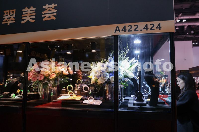 图片说明:2025年3月19日,观众在 2025北京国际珠宝展上观看珠宝首饰。