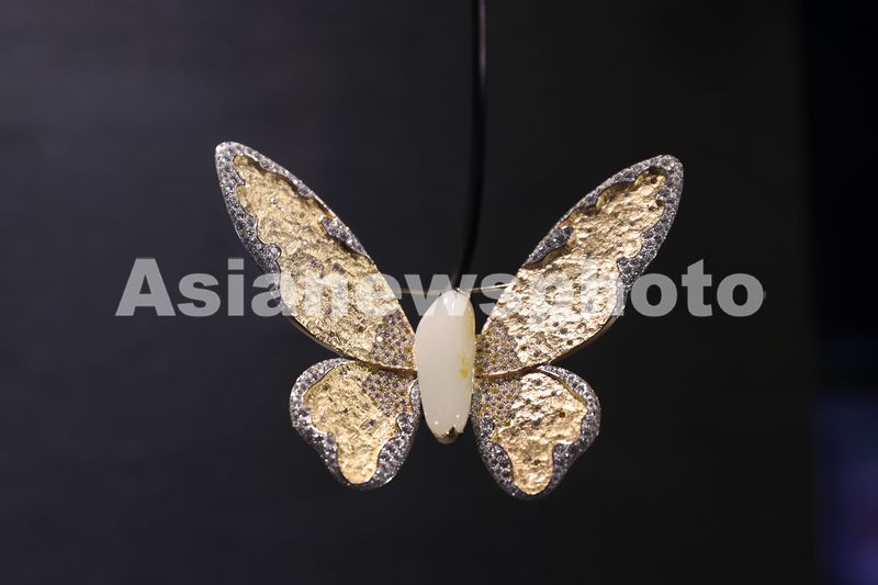 图片说明:2025年3月19日,在 2025北京国际珠宝展上拍摄的胸针。