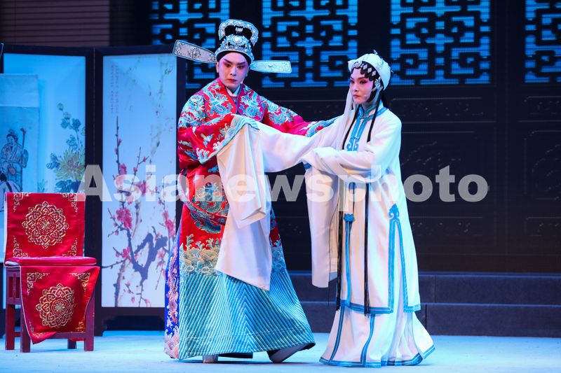 图片说明:2025年3月19日,江苏省淮海剧团青年演员表演淮海戏《赵五娘·书房会》。