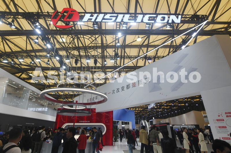 图片说明:2025年3月20日,观众在2025中国家电及消费电子博览会(2025AWE)上参观海思展台。