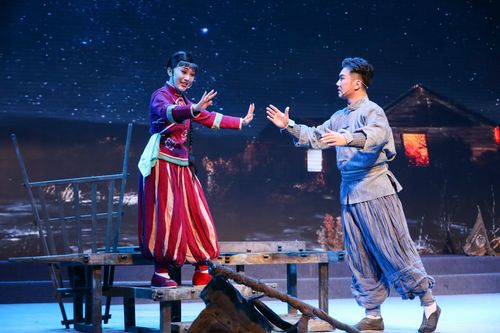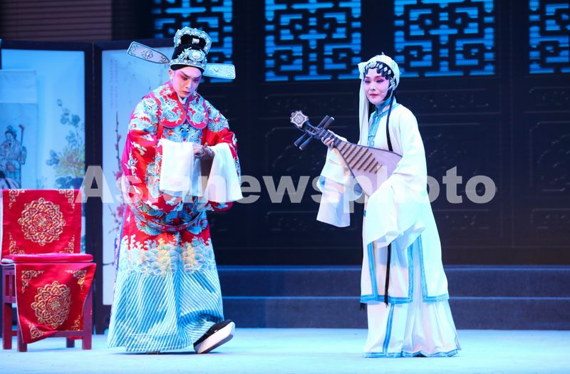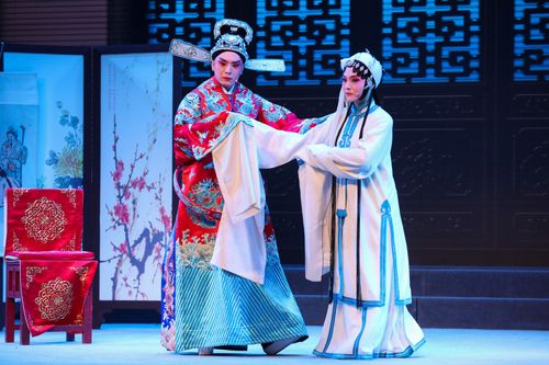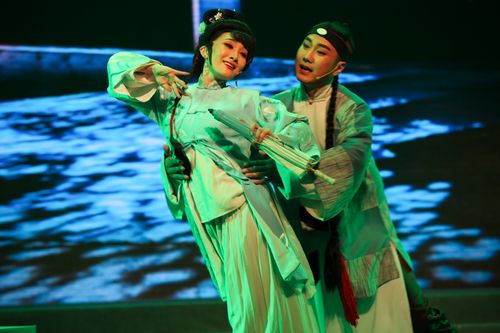 图片说明:2025年3月19日,江苏省淮海剧团青年演员表演淮海戏《赵五娘·书房会》。