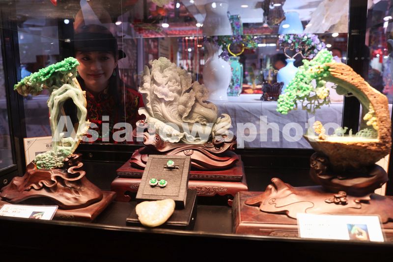 图片说明:2025年3月19日,观众在 2025北京国际珠宝展上观看珠宝首饰。