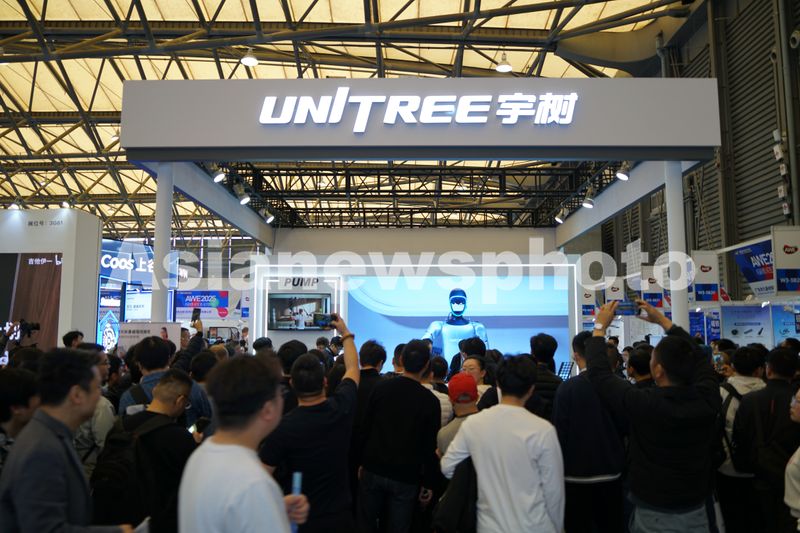 2025年3月20日,2025中国家电及消费电子博览会(AWE2025)当天在上海新国际博览中心开幕,展览现场宇树科技机器人展区人气爆棚。