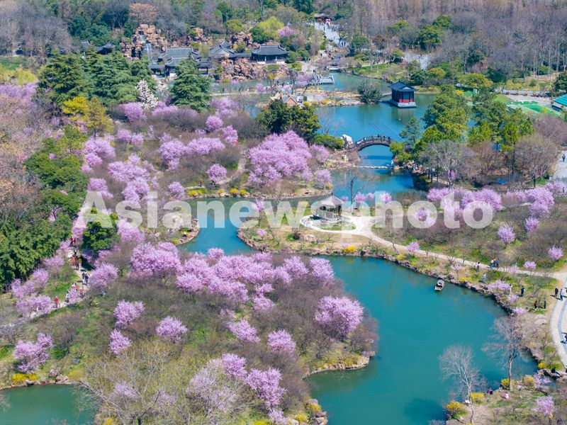 2025年3月21日,江苏扬州瘦西湖风景区春意盎然,红梅绽放,柳枝吐绿,吸引众多游客前来踏青赏花,尽享美好春光。