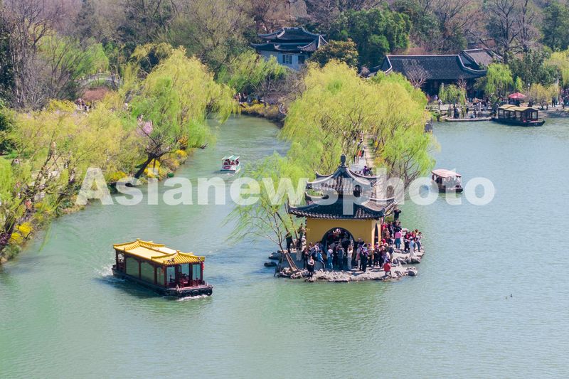 2025年3月21日,游客在江苏扬州瘦西湖风景区赏景游玩。