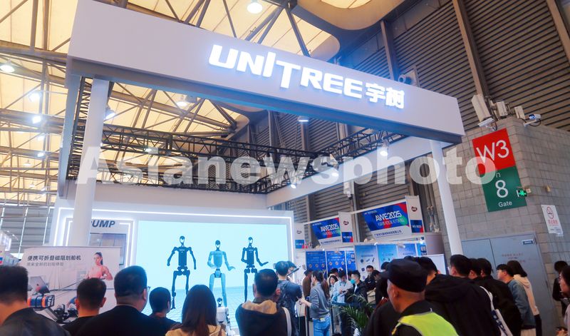 图片说明:2025年3月20日,上海,2025中国家电及消费电子博览上,“春晚顶流“宇树科技机器人的展位人气火爆。