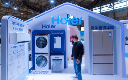 2025年3月20日,上海,中国家电及消费电子博览会上的国产品牌海尔智能电器(洗衣机、电冰箱、空调)展区。