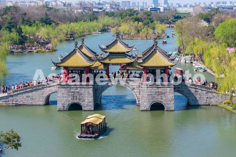 2025年3月21日,游客在江苏扬州瘦西湖风景区赏景游玩。