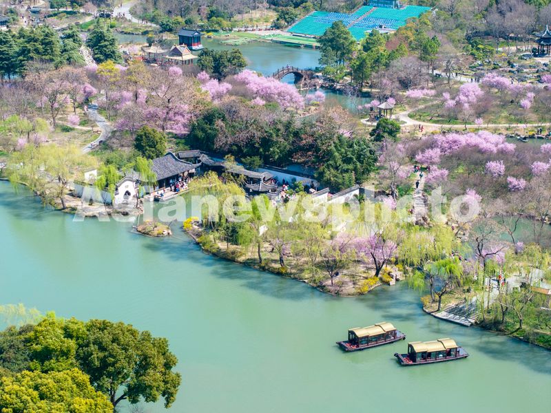 2025年3月21日,江苏扬州瘦西湖风景区春意盎然,红梅绽放,柳枝吐绿,吸引众多游客前来踏青赏花,尽享美好春光。