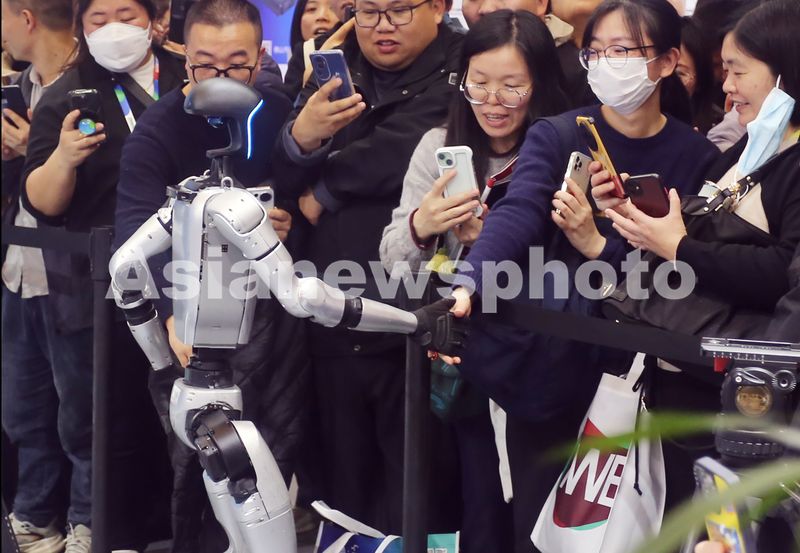图片说明:2025年3月20日,上海,2025中国家电及消费电子博览上,“春晚顶流“宇树科技G1机器人受到观众热烈追捧,高科技明星的“握手会”人气十足。