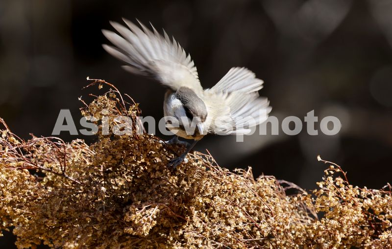 图片说明:2025年3月23日,一只褐头山雀鸟在祁连山国家公园肃南马蹄乡管护区林间栖息。