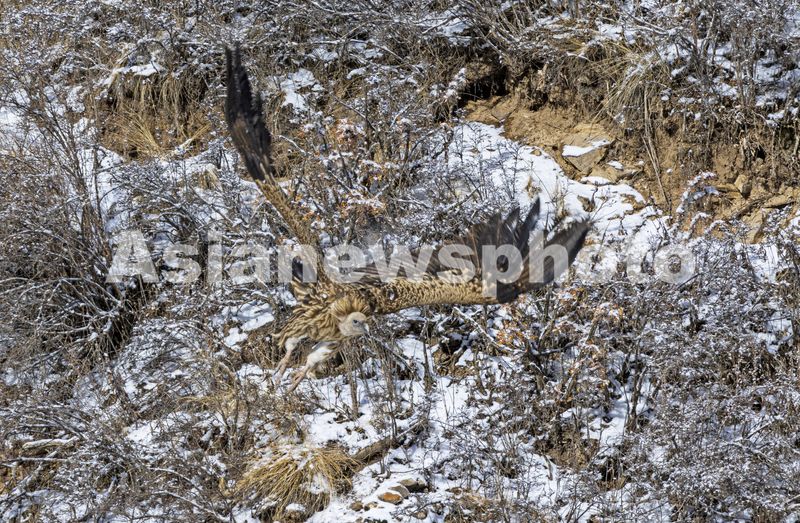 图片说明:2025年3月22日,一只胡秃鹫在祁连山国家公园山丹马场管护区飞翔。