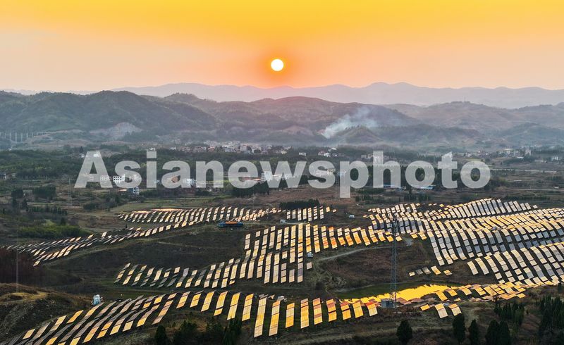 2025年3月21日,湖南省永州市新田县新田县三井镇茂家光伏发电站,一排排光伏发电板排列在连绵起伏的山峦之中,在阳光照耀下熠熠生辉,犹如“金山”,壮美如画。