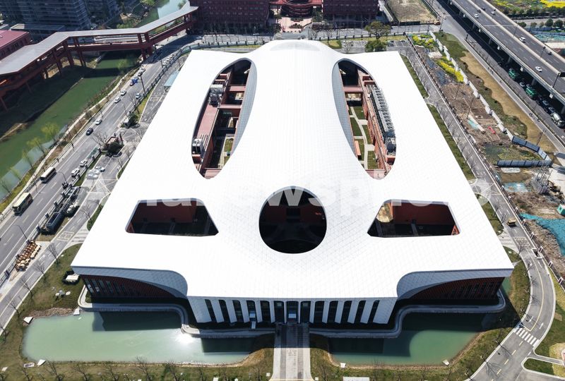 2025年3月22日,从空中俯瞰国家重大科技基础设施——浙江大学超重力离心模拟与实验装置的实验大楼。