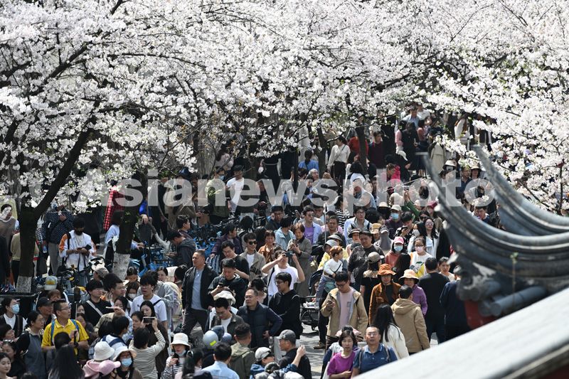 图片说明:2025年3月24日,江苏南京,鸡鸣寺路的樱花进入最佳观赏期,赏花游客人头攒动。