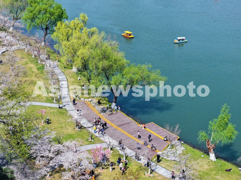 2025年3月22日,江苏南京玄武湖公园春意盎然,樱花绽放,柳枝吐绿,吸引众多游客前来踏青赏花,尽享美好春光。