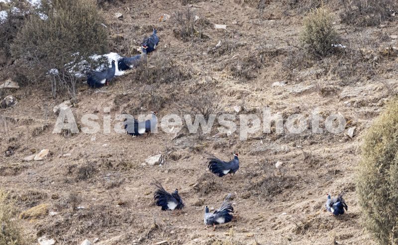 图片说明:2025年3月22日,一群蓝马鸡在祁连山国家公园山丹马场管护区觅食。