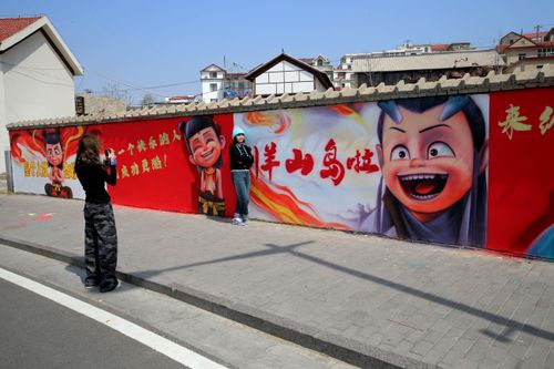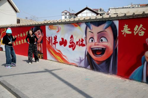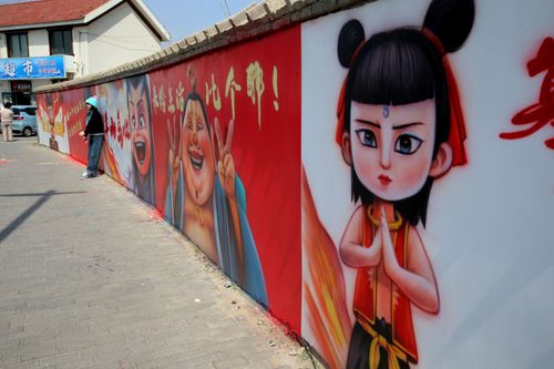 近日,江苏省连云港市连云区高公岛街道的羊山岛一组绘有电影《哪吒之魔童闹海》的大幅墙绘映入眼帘,一个个栩栩如生、灵活生动的形象跃然墙面,为美丽乡村增添了一道亮丽的风景线,吸引不少游客前来打卡拍照。
