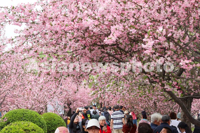 图片说明:2025年3月23日,游客在江苏南京莫愁湖公园赏花游玩。