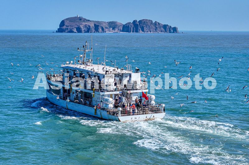近日,随着天气逐渐回暖,山东省荣成市海驴岛海域迎来大批黑尾鸥,为春日的海岛增添了一抹灵动的色彩。海驴岛环岛游项目也应季开航,吸引众多游客乘船出行,近距离感受人与自然和谐共处的美好。游船激起层层浪花,与蓝天、大海和黑尾鸥共同构成一幅美丽的自然画卷。海驴岛位于荣成市北部海域,面积约0.11平方千米 ,因整座岛屿状似一只驴卧于海中而得名。这里自然条件优越,是黑尾鸥重要的栖息繁殖地,每年来到海驴岛的黑尾鸥总数量可达四万余只,因此海驴岛也享有“海上仙山、鸥鹭王国”的美誉。