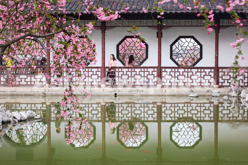 图片说明:2025年3月23日,游客在江苏南京莫愁湖公园赏花游玩。