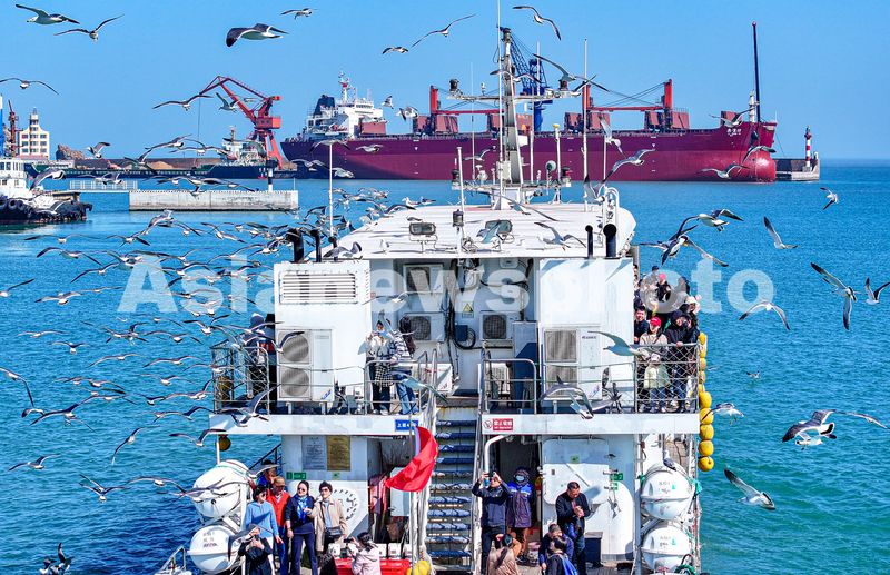 近日,随着天气逐渐回暖,山东省荣成市海驴岛海域迎来大批黑尾鸥,为春日的海岛增添了一抹灵动的色彩。海驴岛环岛游项目也应季开航,吸引众多游客乘船出行,近距离感受人与自然和谐共处的美好。游船激起层层浪花,与蓝天、大海和黑尾鸥共同构成一幅美丽的自然画卷。海驴岛位于荣成市北部海域,面积约0.11平方千米 ,因整座岛屿状似一只驴卧于海中而得名。这里自然条件优越,是黑尾鸥重要的栖息繁殖地,每年来到海驴岛的黑尾鸥总数量可达四万余只,因此海驴岛也享有“海上仙山、鸥鹭王国”的美誉。