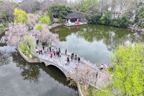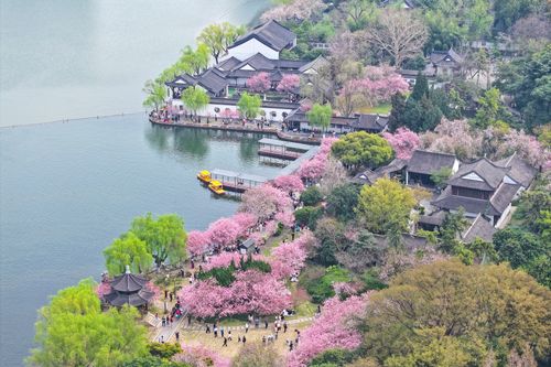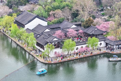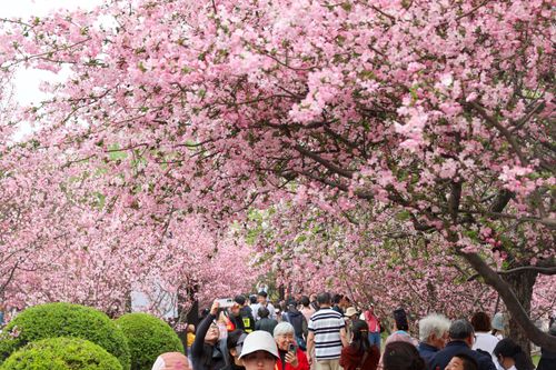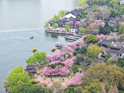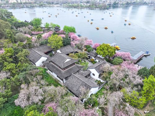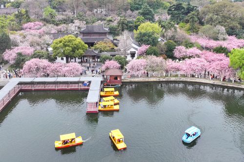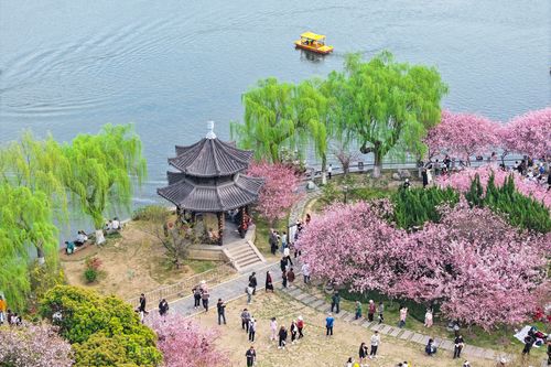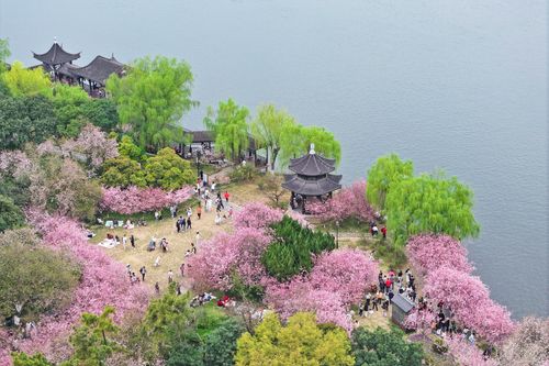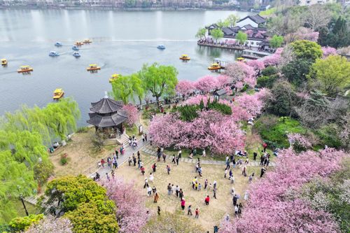 图片说明:2025年3月23日,游客在江苏南京莫愁湖公园赏花游玩。