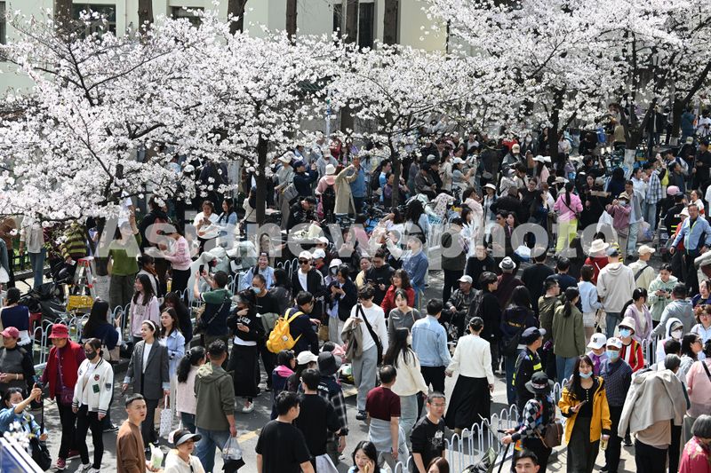 图片说明:2025年3月24日,江苏南京,鸡鸣寺路的樱花进入最佳观赏期,赏花游客人头攒动。