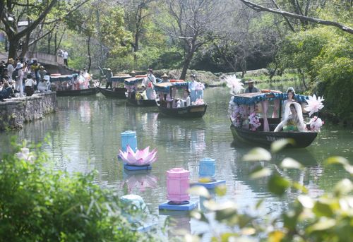 当日,“十二花神”在杭州西溪国家湿地公园举行大型“花神迎春”水陆巡游活动,展示花朝节的传统习俗和文化,吸引了大批市民游客前来踏青赏花并感受传统文化的魅力。