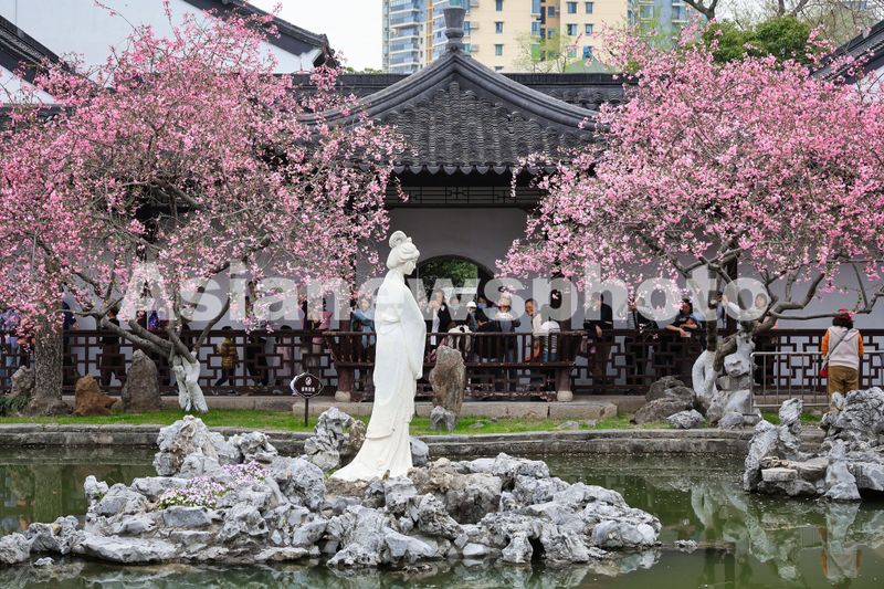 2025年3月23日,南京莫愁湖公园内海棠花盛开,春意盎然,吸引许多游客前来踏青赏花,乐享春光。