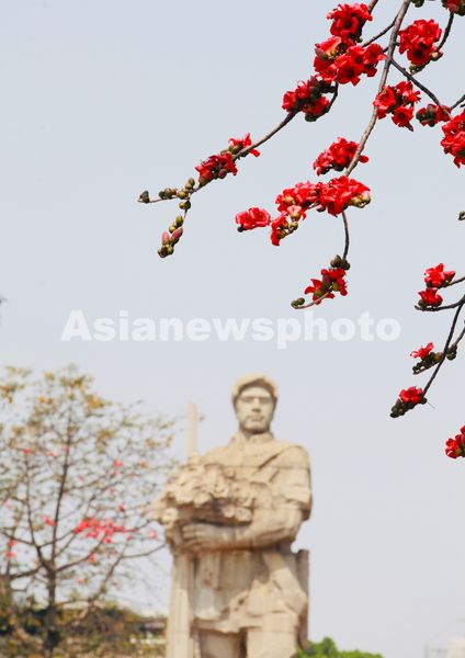 2025年3月22日,广州中山纪念堂以及广州解放纪念碑前的木棉花盛放。木棉花是广州的市花,又称“英雄花”。