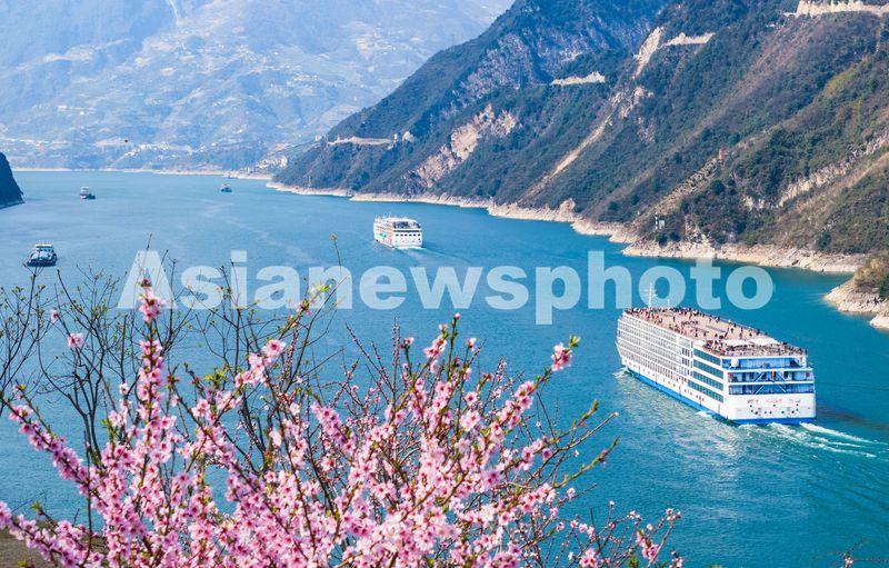 图片说明:2025年3月19日,游客乘坐游轮在长江三峡西陵峡湖北省宜昌市秭归县境内牛肝马肺峡游览。