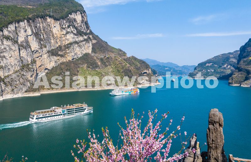 图片说明:2025年3月19日,游客乘坐游轮在长江三峡西陵峡湖北省宜昌市秭归县境内牛肝马肺峡游览。